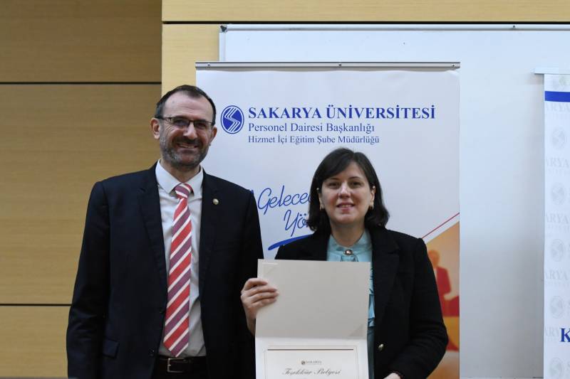 Başvurularda yazılabilecek örnek maddelerin de gösterildiği eğitim, SAÜ Rektör Yardımcısı Prof. Dr. Özer Köseoğlu’nun Doç. Dr. Cihan Selek Öz’e teşekkür belgesi takdim etmesiyle sonlandı.